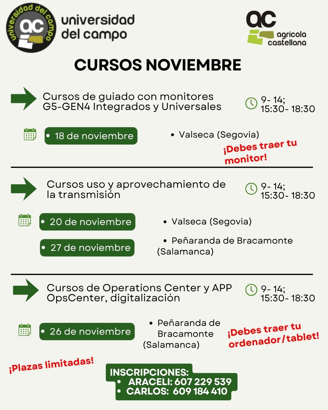 FORMACIONES PRESENCIALES GRATUITAS NOVIEMBRE