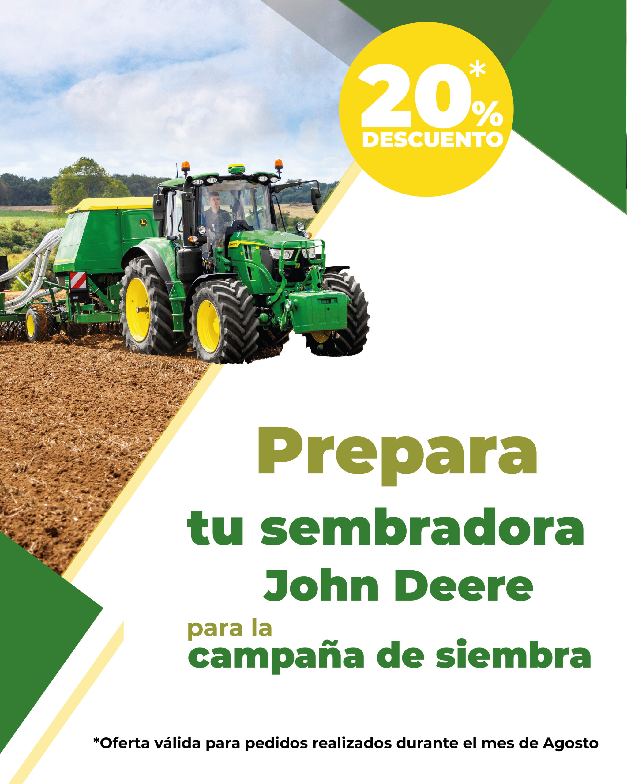 Encargue durante el mes de Agosto su repuesto de sembradora, nosotros se lo entregaremos durante el mes de Septiembre (entre 4-5 semanas desde la confirmación del pedido) y se beneficiará de un 20% de descuento.