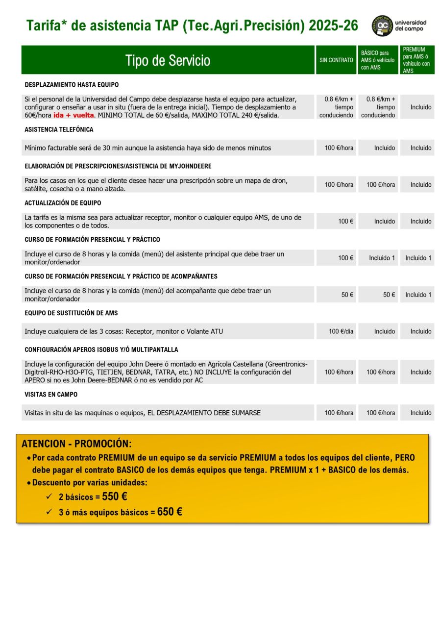El PREMIUM se ofrece en un solo equipo, los demás equipos de la explotación deben pagar el BÁSICO y de este modo todos tendrán servicio PREMIUM (con independencia del número total de equipos de guiado o máquinas de guiado, antes era solo para 5 equipos totales).