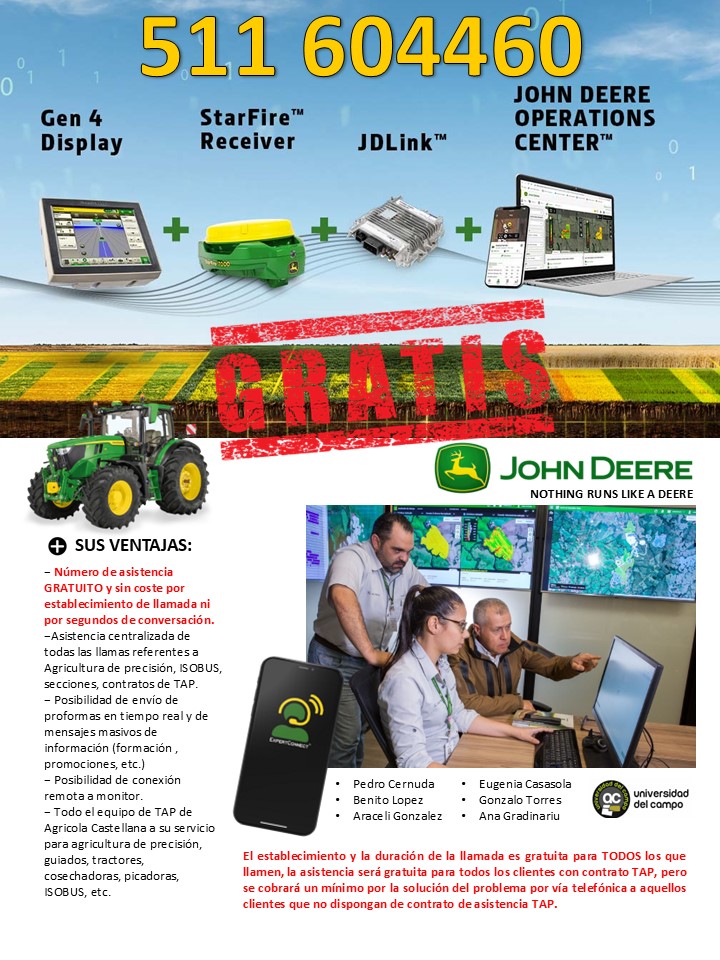 Existe además un número genérico y global para atender TODAS las llamadas relativas a agricultura de precisión, que es la línea “Expert Connect”.