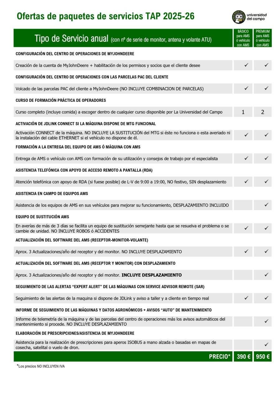 El PREMIUM se ofrece en un solo equipo, los demás equipos de la explotación deben pagar el BÁSICO y de este modo todos tendrán servicio PREMIUM (con independencia del número total de equipos de guiado o máquinas de guiado, antes era solo para 5 equipos totales).