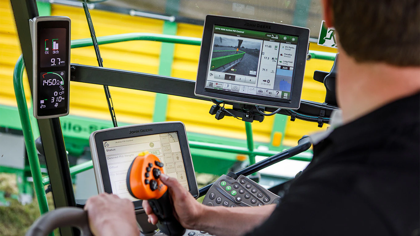 Nuestros monitores con pantalla táctil intuitivos son el cerebro que hay detrás de la tecnología de agricultura de precisión John Deere. Compatibles con ISOBUS, cuentan con menús sencillos y pantallas personalizables.